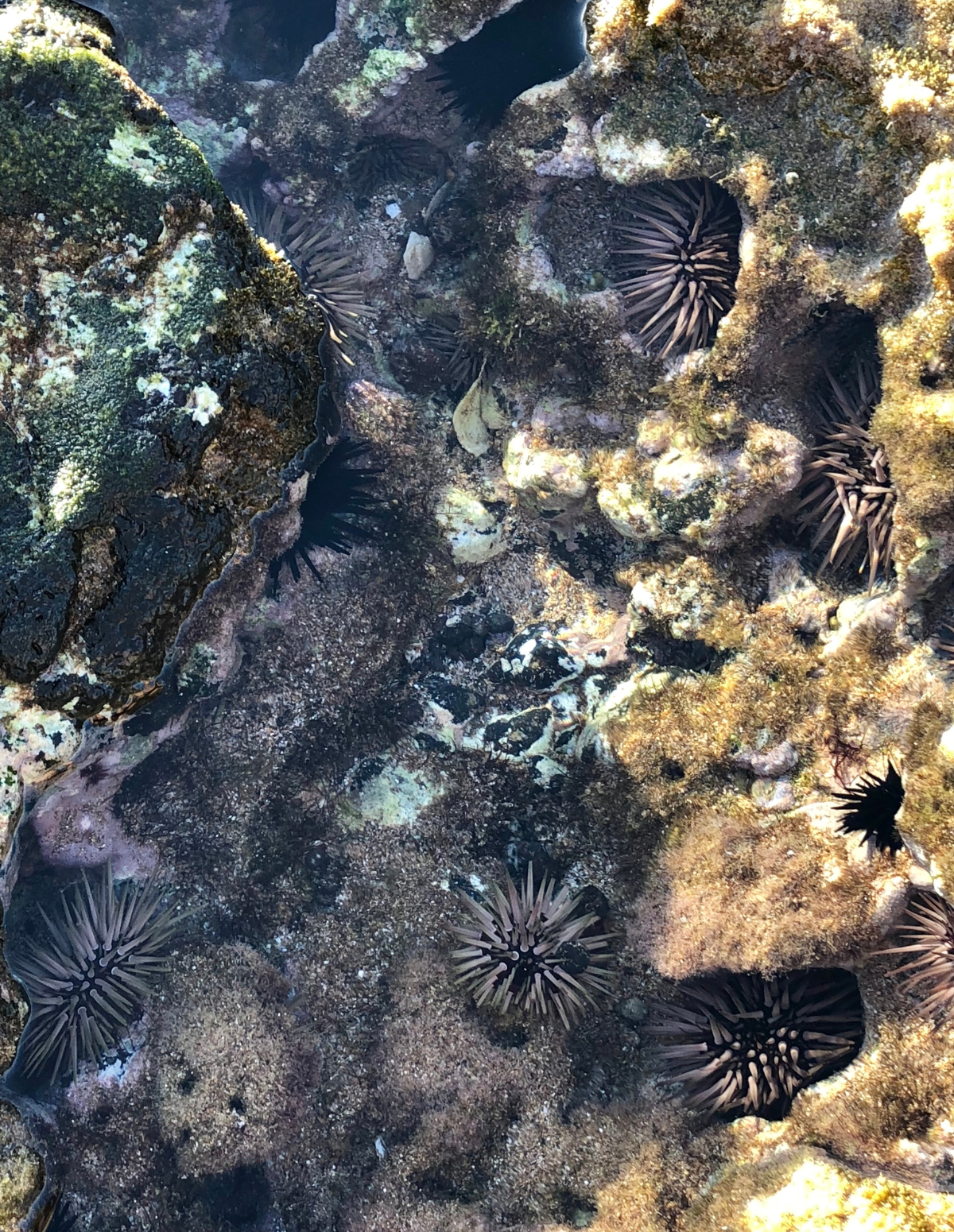 The Fairmont sits on Polo Beach in Wailea. It’s a beautiful beach but it can get a little windy (especially in the afternoon). The south end of the beach (go out to the beach and walk left) has some lava rock formations that form tidepools and are home to urchins, crabs, and other sea life when the tide goes out. I suggest wearing shoes so you can scamper around the rocks safely.