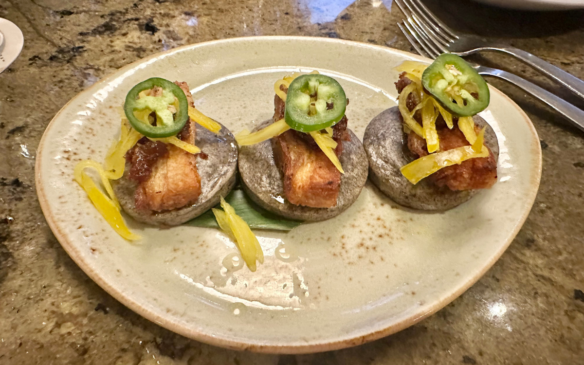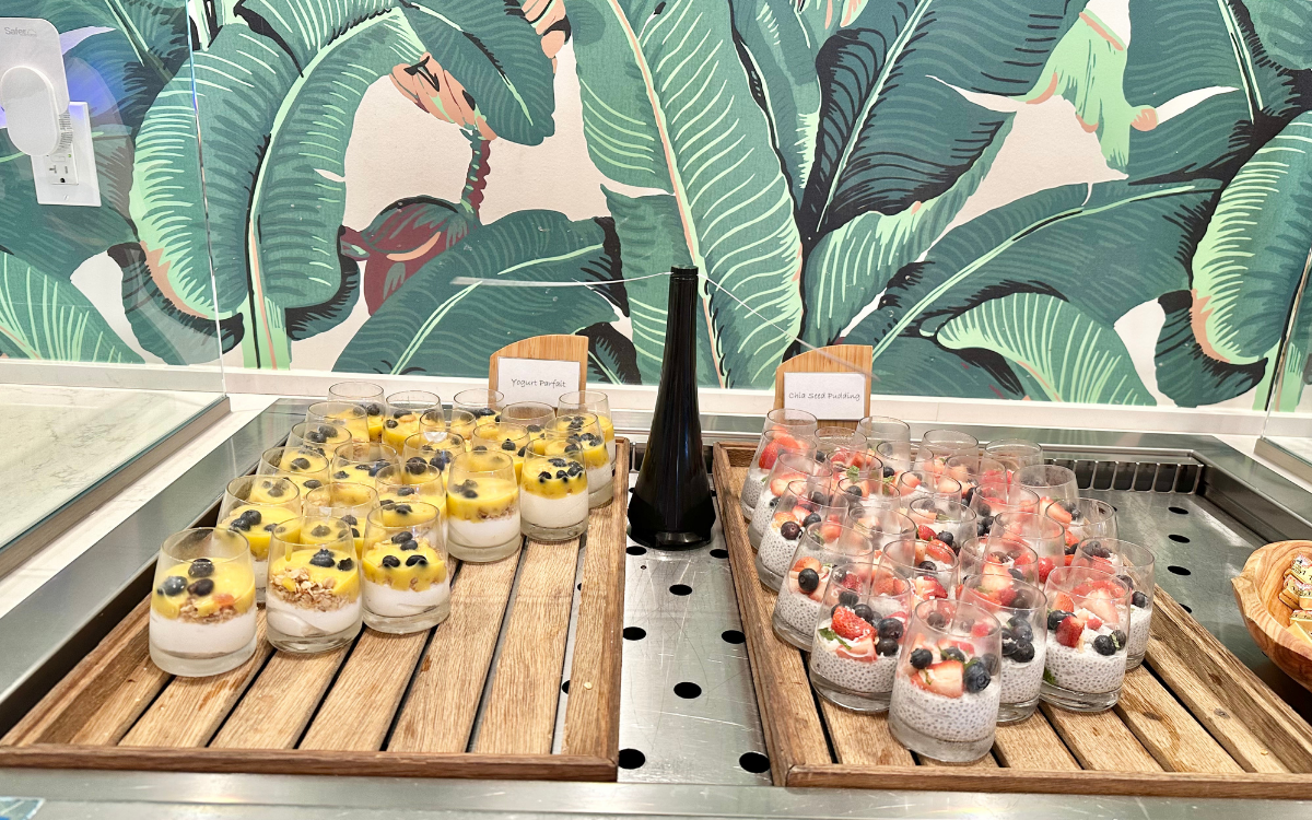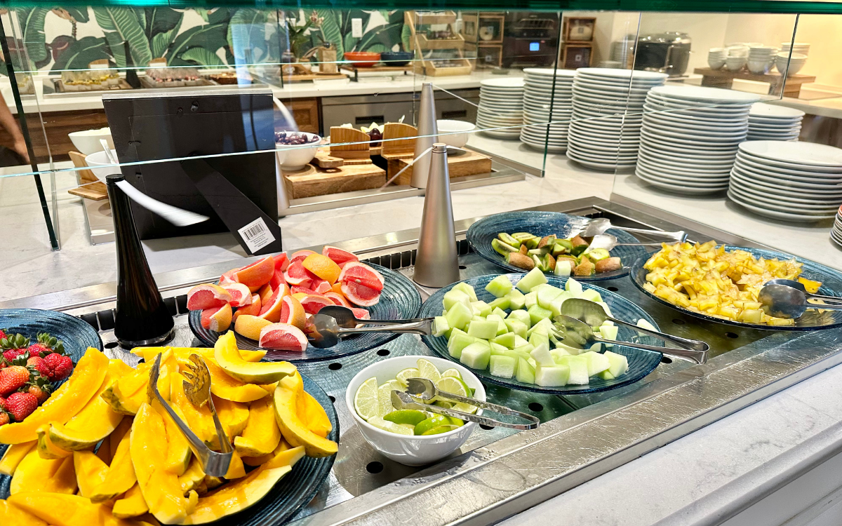 I’ve had breakfast at the Kea Lani Restaurant a few times now and it’s an impressive breakfast buffet. Even compared to other resorts in Wailea. It has a good selection of American, Hawaiian, and Asian favorites. Besides an omelet station and choices of pancakes, waffles, French toast, breakfast meats, eggs, etc., there’s a wide selection of local fruits and topping stations for chia pudding and oatmeal as well as a meat and cheese board with salmon.