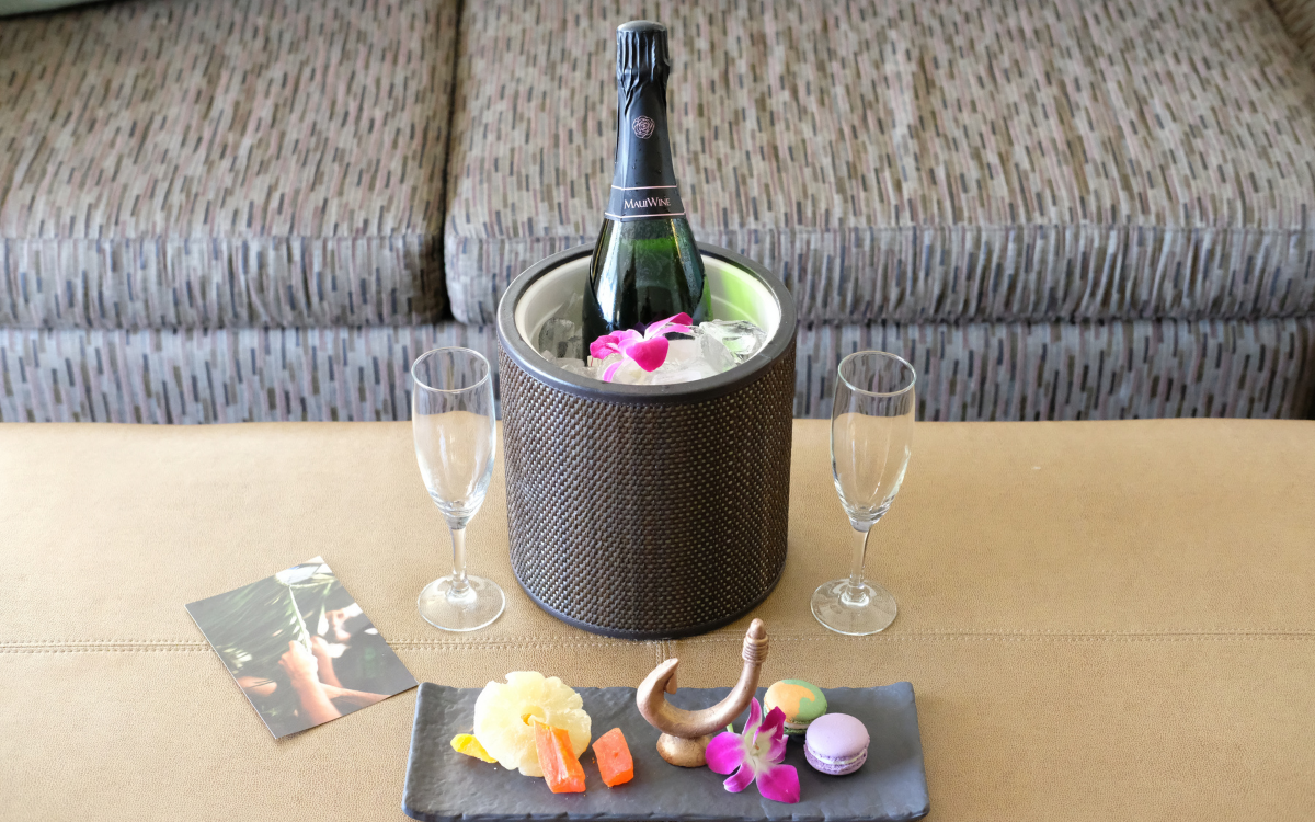 We also had a special delivery! Macarons and a bottle of sparkling wine from Maui Wine! Every time I’ve stayed at a Fairmont, we’ve gotten a special surprise, so when you check in make sure they know if you’re celebrating something special. Also, you’ll get text messages from the concierge checking in on you throughout your stay so don’t be afraid to mention it to them as well! They really go out of their way to make each and every guest feel so special.