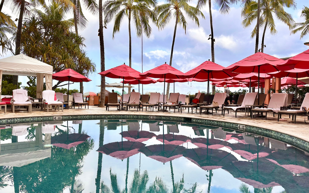 Talk about Instagrammable! You’d be hard pressed to find a more aesthetically pleasing pool area in Waikiki. The umbrellas! The SWINGS at the bar!
