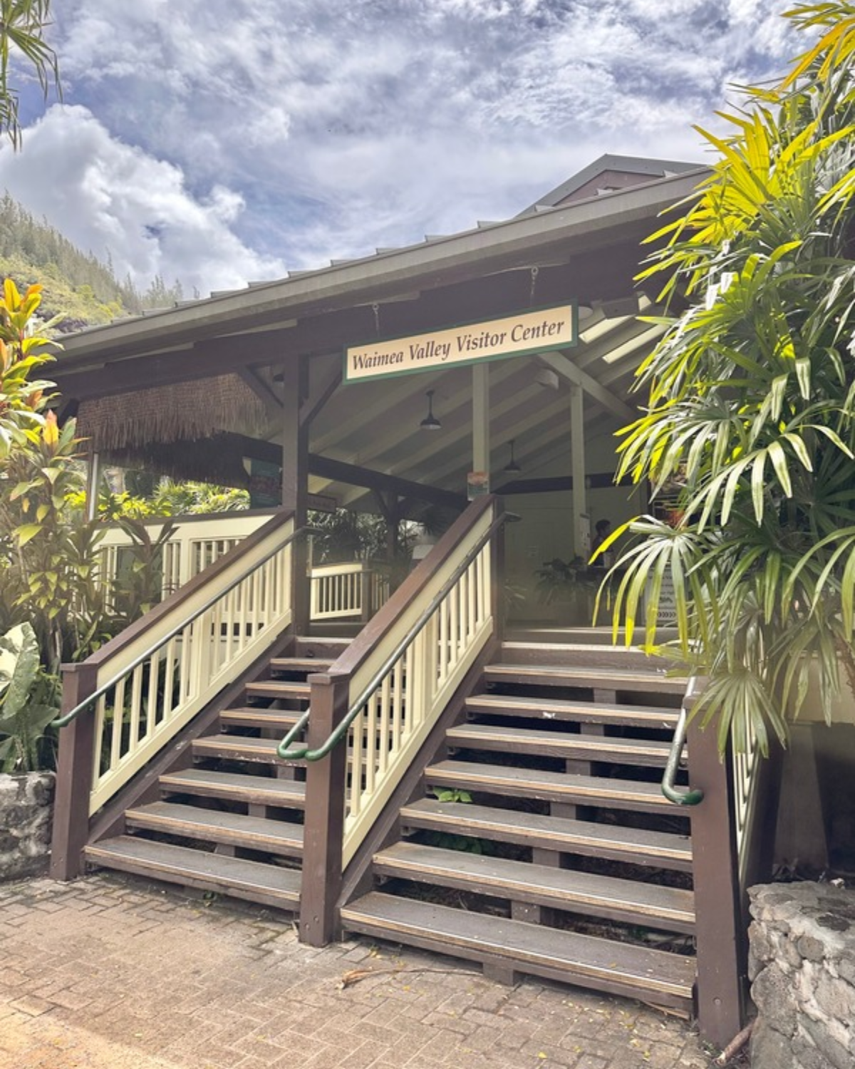 When you arrive at Waimea Valley on the North Shore, you’ll check in at the entrance and pay admission ($25 for adults, $15 for kids). Parking is included and easy, which is such a relief compared to some other spots on the island.