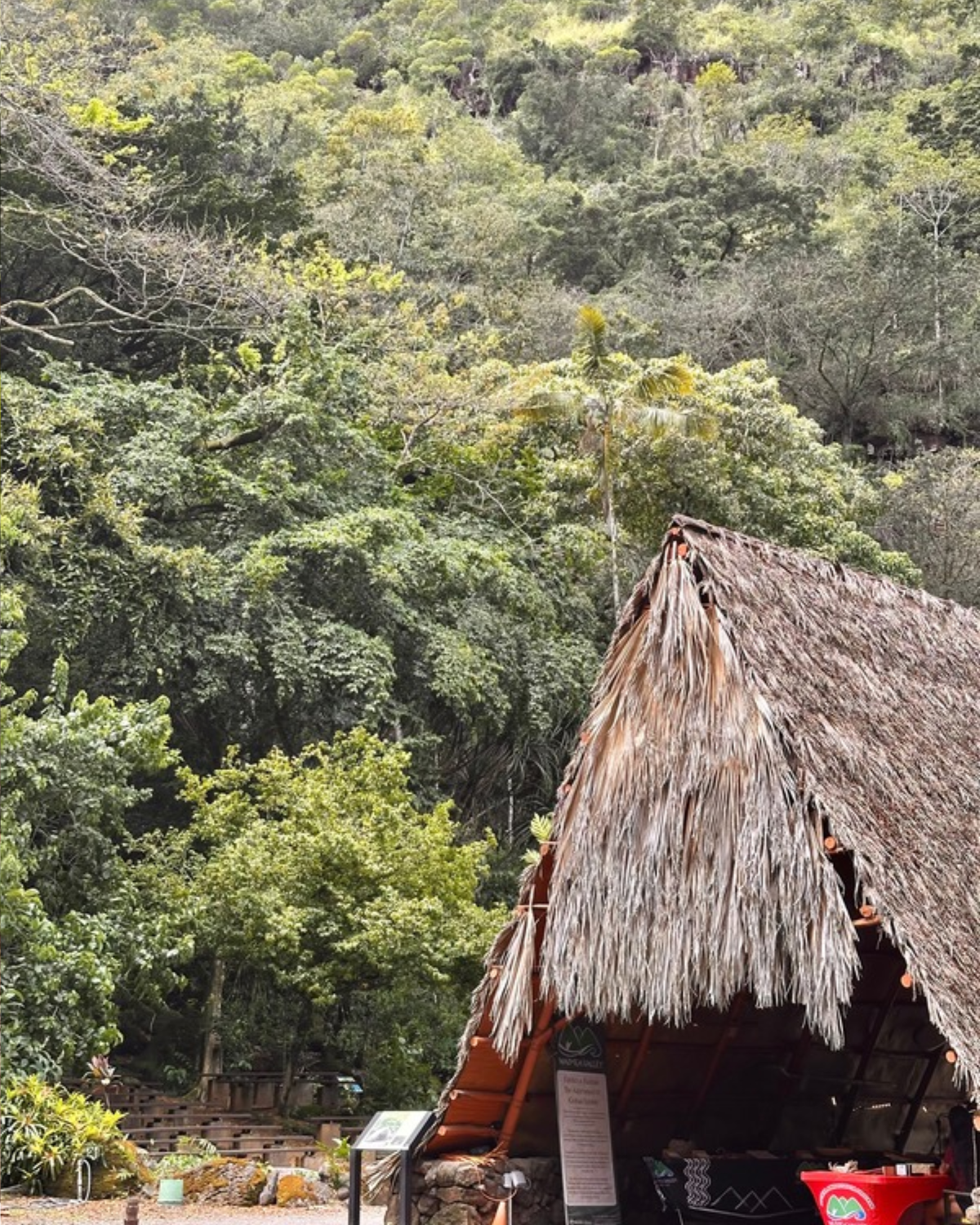 Right away, the vibe feels different from a typical trailhead. There’s a visitor center, restrooms, and often cultural demonstrations happening — hula, lei making, educational talks, that kind of thing.